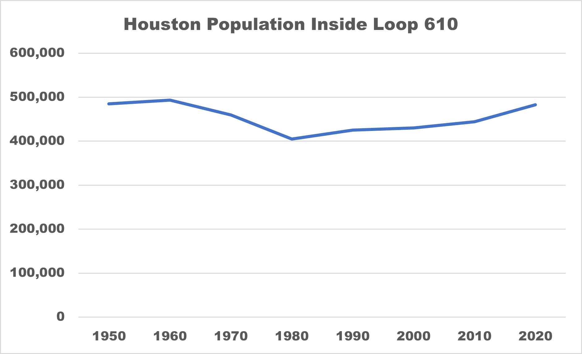 Saying the inner loop population just past previous highs from the 1960s doesn’t really seem to be all that impressive. So according to the chart above - back to the 500,00 mark but yet the population of Houston went from 940,000 to 2.3 million in that same time frame. (not including the suburbs and whole metro area)