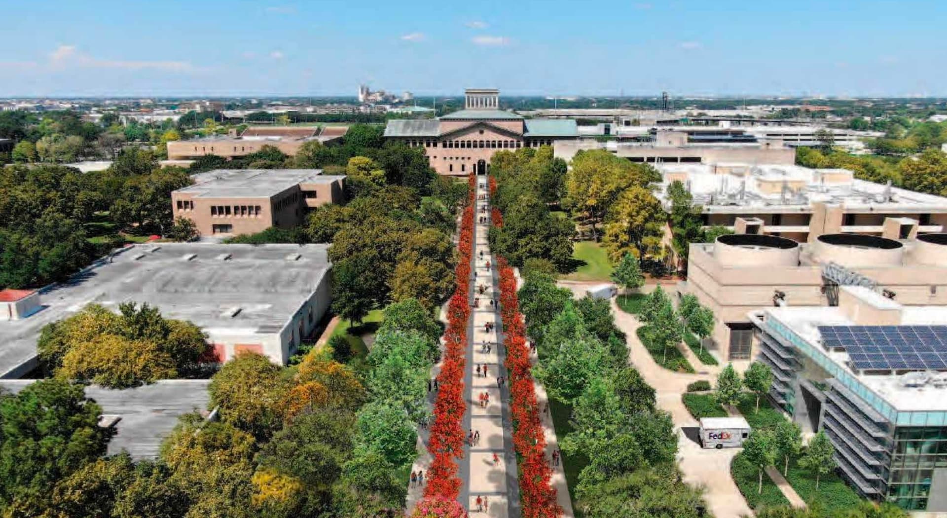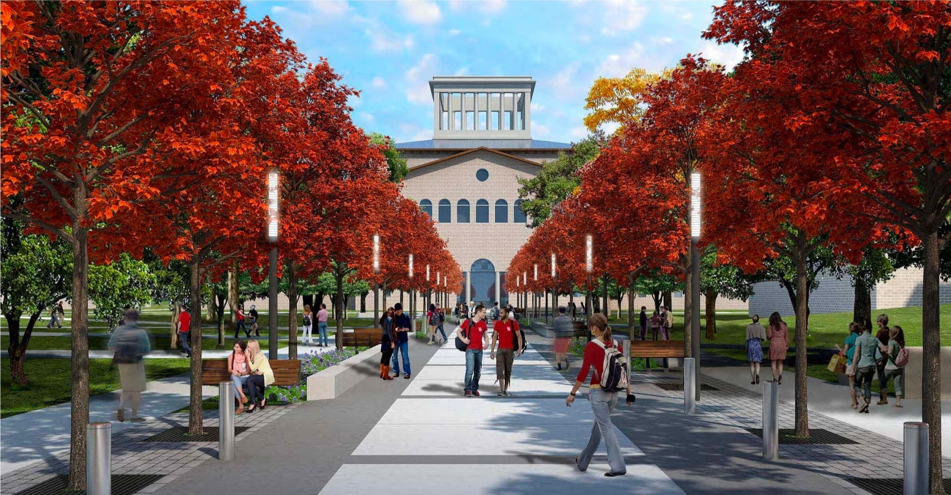 I don’t know what trees have red leaves, but it would be cool looking for the campus transformation.