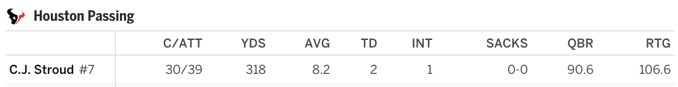 I’m not exactly a CJ Stroud lover, but he did put up a better performance with a worse supporting offensive cast against this same 49ers team earlier in the year.