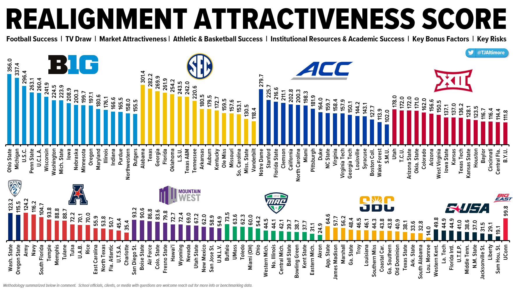 Where I find this chart looses its credibly is placing Stanford as the most attractive ACC school when it’s very clear that nobody wants Stanford for different reasons