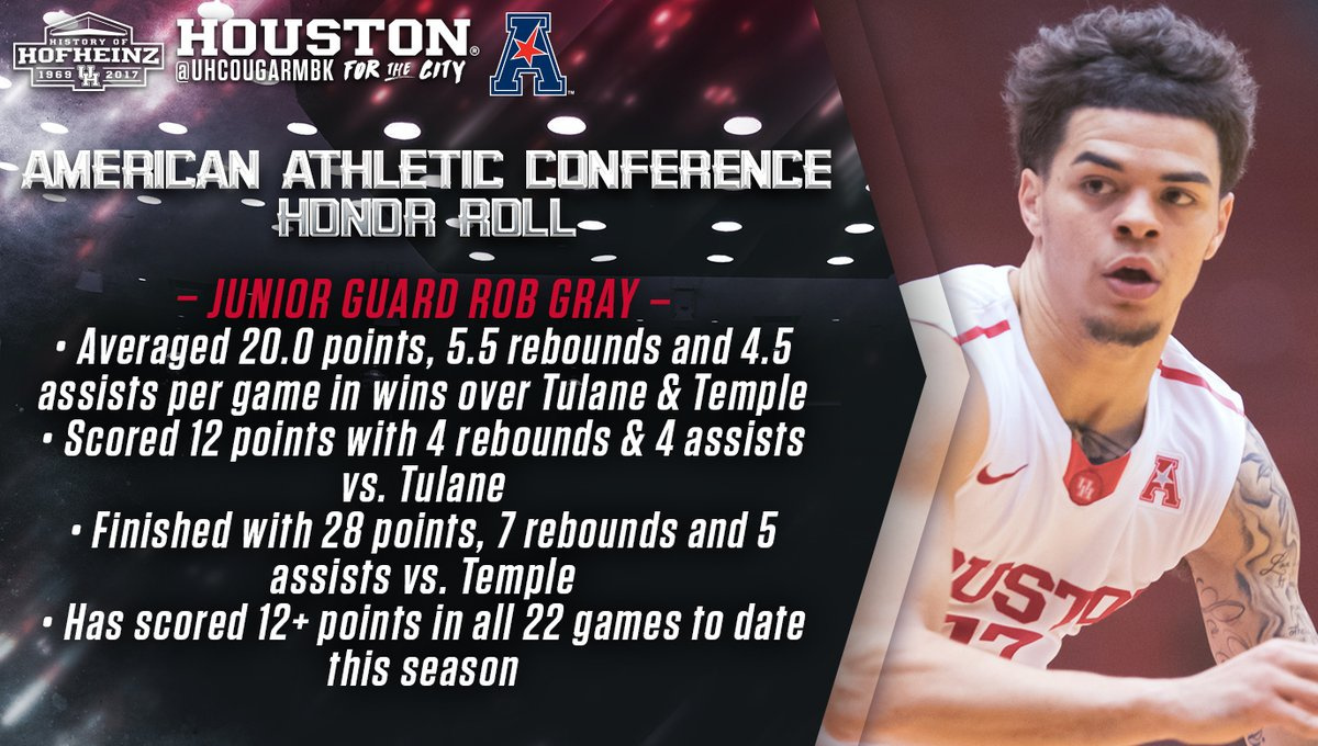 Rob Gray makes the AAC Honor Roll for the 4th time this season