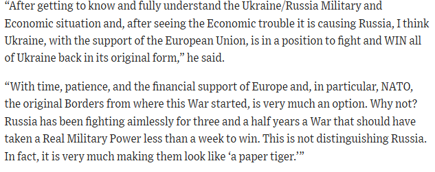 In the meantime Ukraine ought to be allowed and go after every Russian main economical assets.
