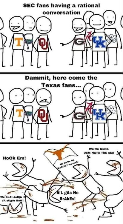 What will happen is the sec will get 4 or so teams in the playoffs however some power programs and medium power teams in the sec could decline bc of losses. Something has to give in that regard. A&M will prob be ok bc they rode some success by being the only Texas sec team. Now they have to deal with OU and Texas recruiting here. Again Espn isn’t thinking this thru bc the best conferences are the ones with 4 or 5 strong programs then they get more conf. wins which keeps their brand. Arkansas is an ex of a once national power that fell off bc of strength of schedule in the sec is now tougher. They might rise again now at the expense of another power. The old SWC big East and big 8 is what Espn should have supported with money to help keep more teams at the top.