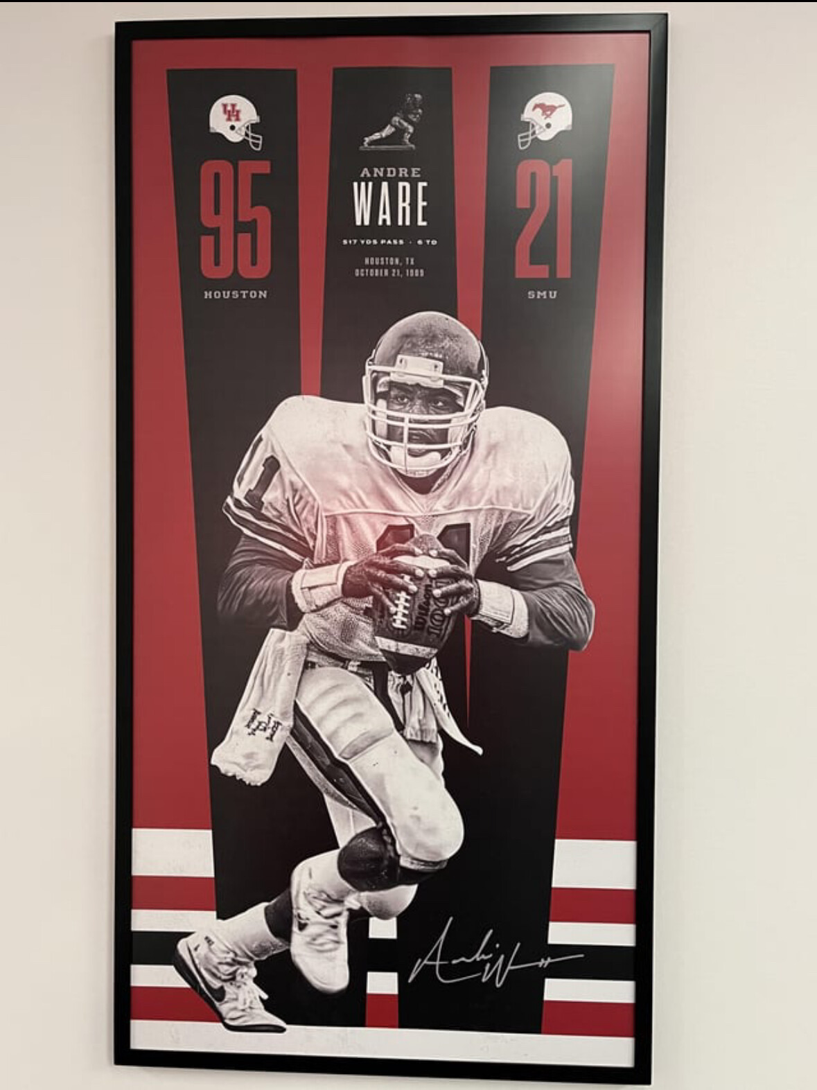 Hakeem, Drexler, Elvin Hayes, Andre Ware, Klinger, Carl Lewis, Keenum’s freshmen year all had blue on their UH jerseys.