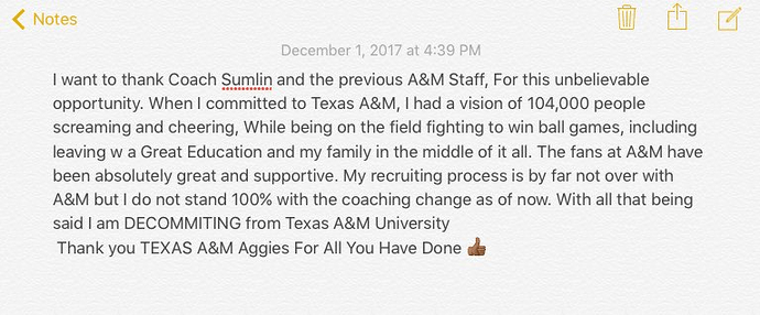 Agree with TEXREG. I also read Gaggies are on the hook for Sumlin buyout even if he gets another coaching position. So in 2018 Gaggies will be paying almost $18 million not counting buyouts of Sumlin coaches Jimbo does not keep. Some deep pockets it farmerville.