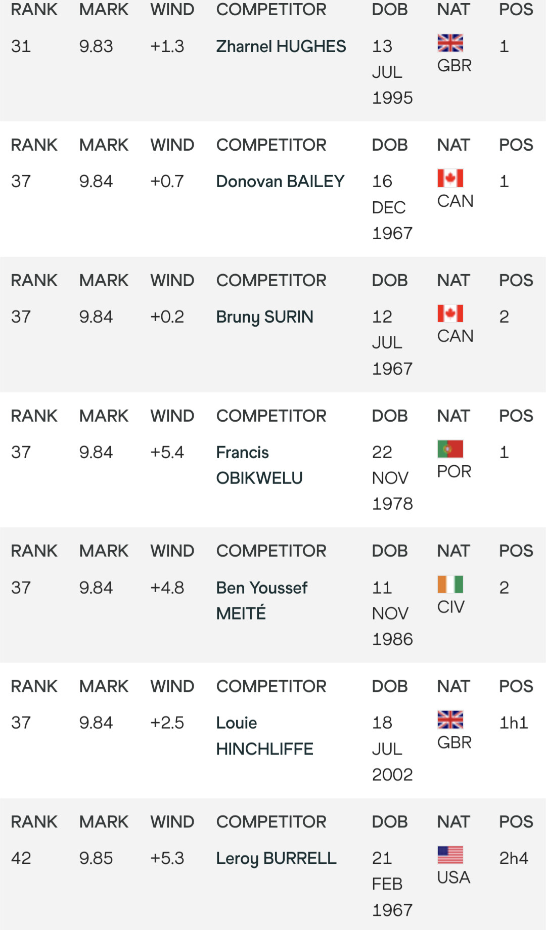 Louie Hinchliffe ran the 37th fastest 100m race of ALL TIME.