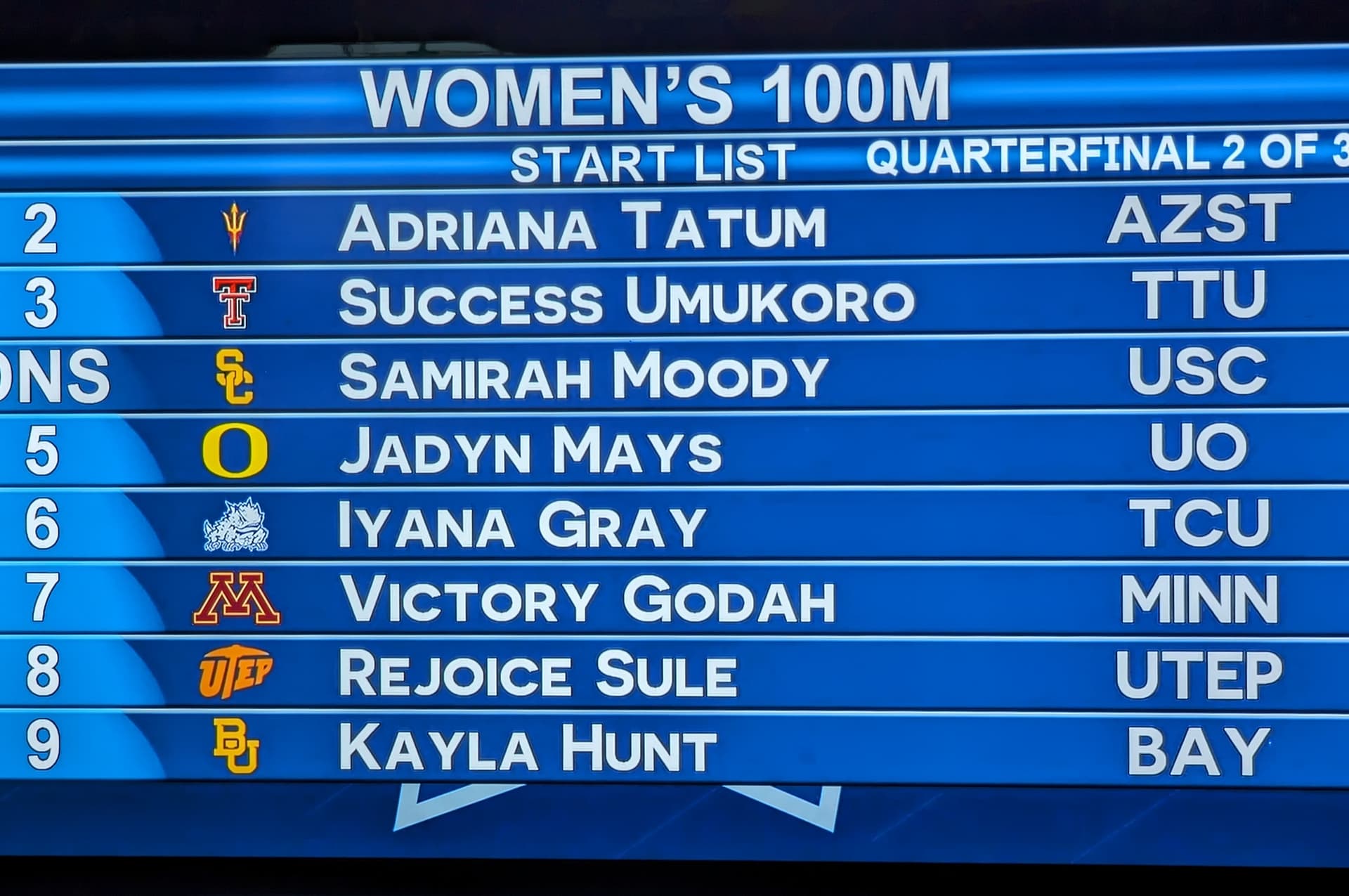 Correct… 100… 200… 110 hurdles… 4x100 relays… pole vault… discus…