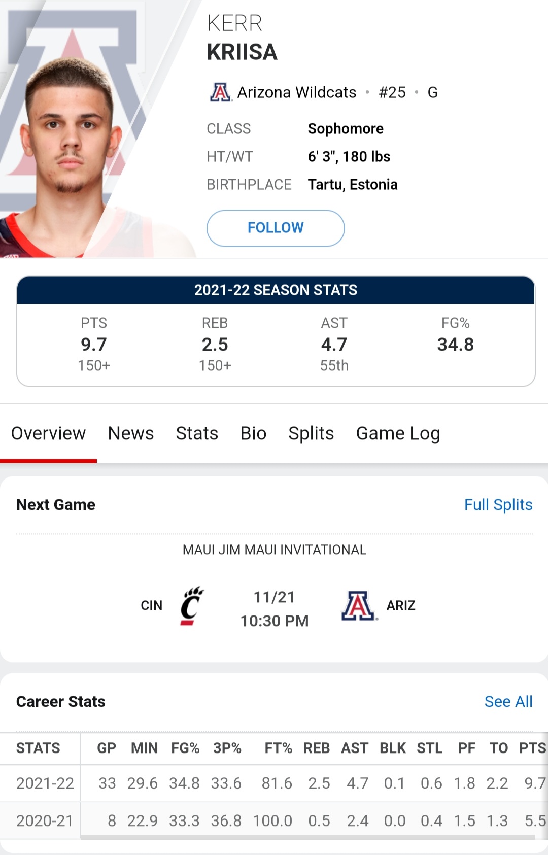 Kriisa unfortunately, with his performance in the NCAA tournament vs TCU and Houston, i think hurt his stock. Analysts started viewing him as not a smart player.