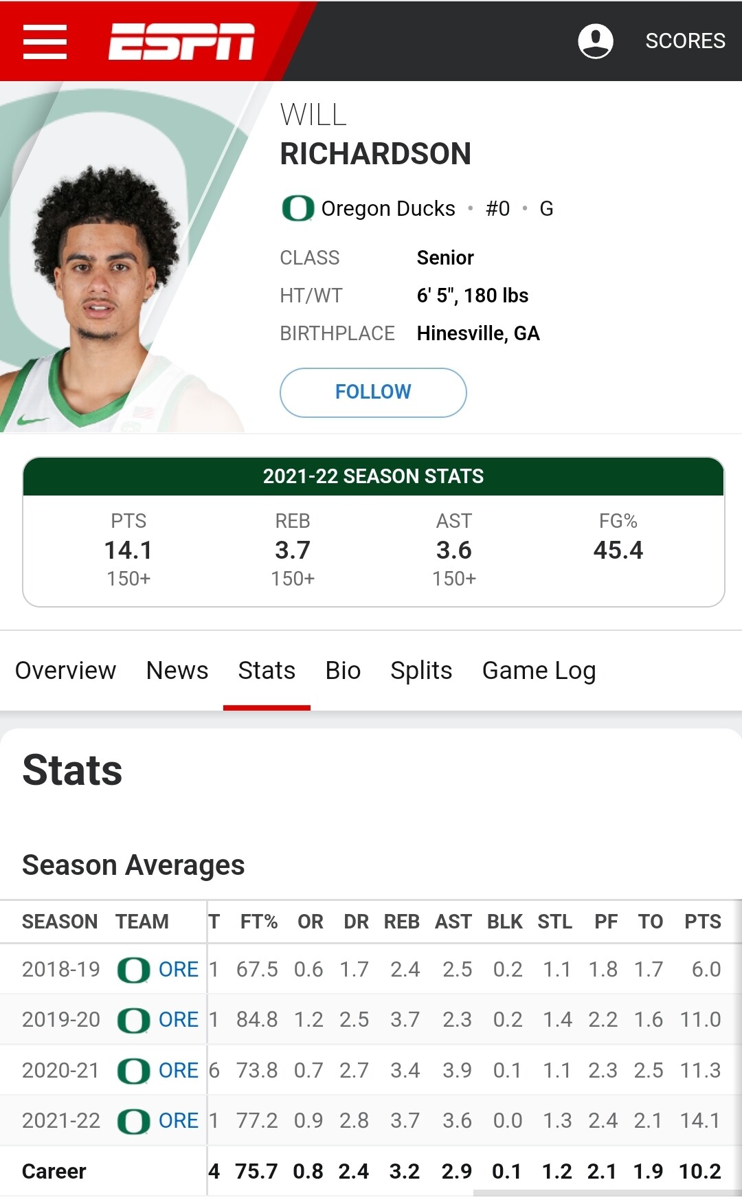 Another guy i missed, Will Richardson, Oregon. That team was such a disappointment last season, that no, i wouldn’t have him this high
