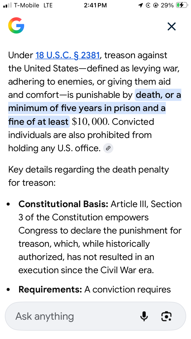 Does that make him a traitor (punishable by death), or do we simply not root for him in 2028?
