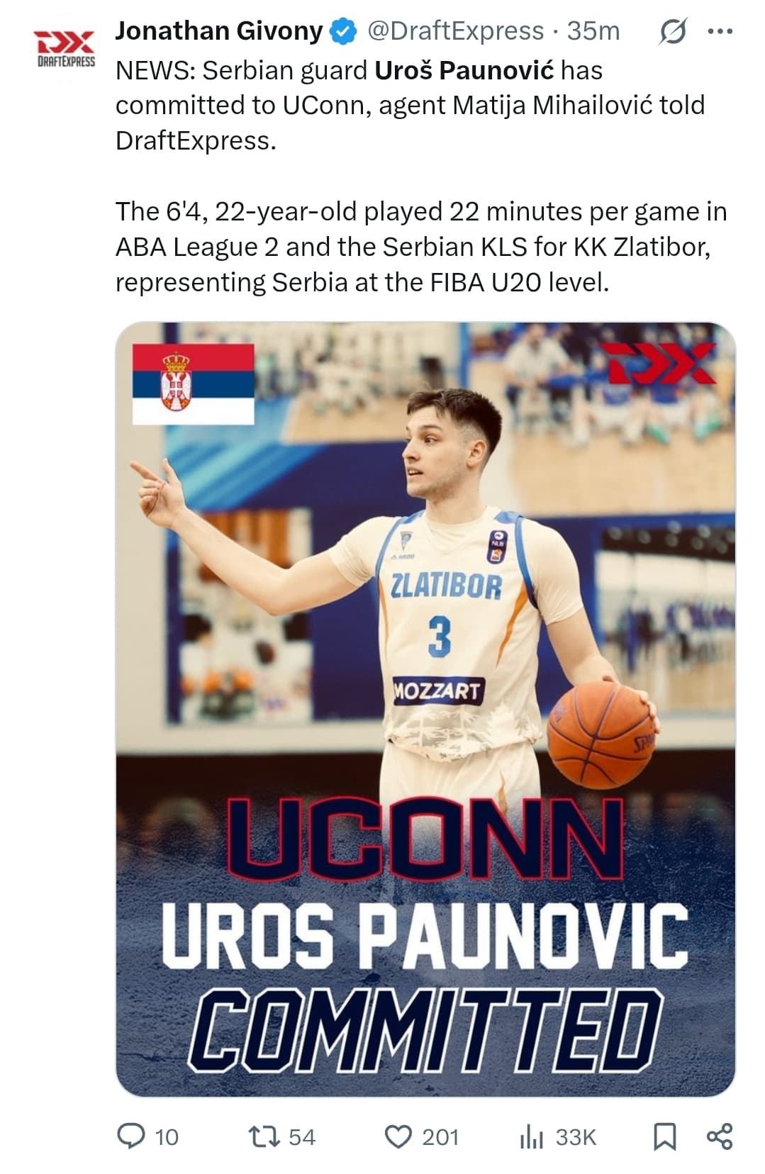 It seems that UCONN may have gotten a bigger bag and is out shopping overseas!