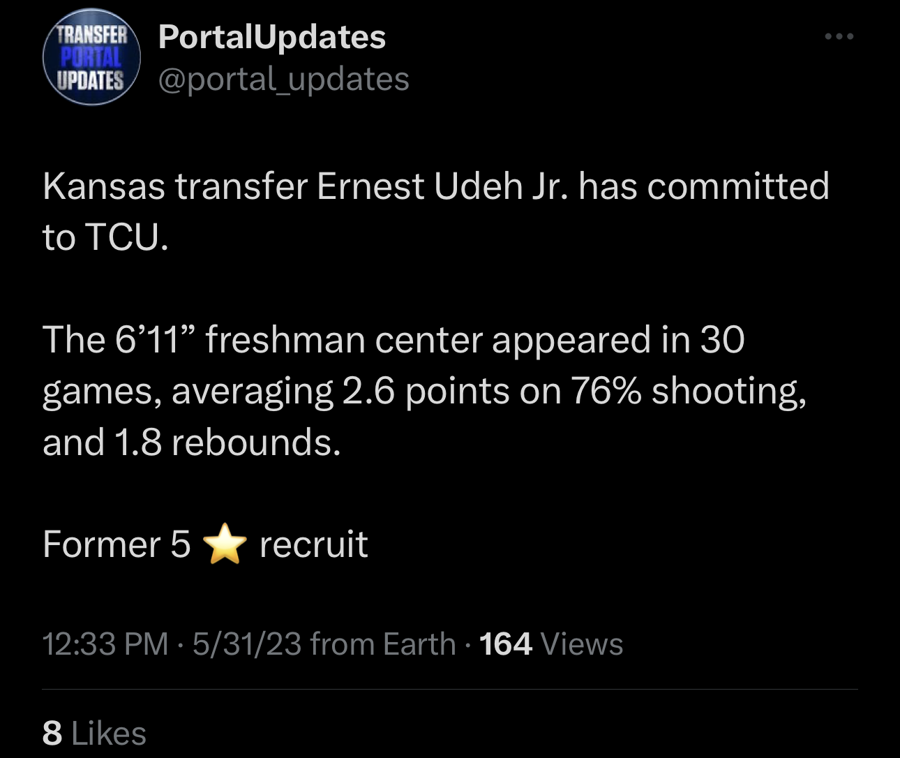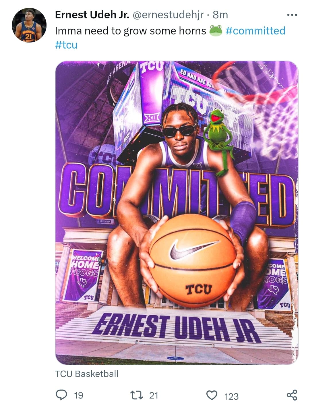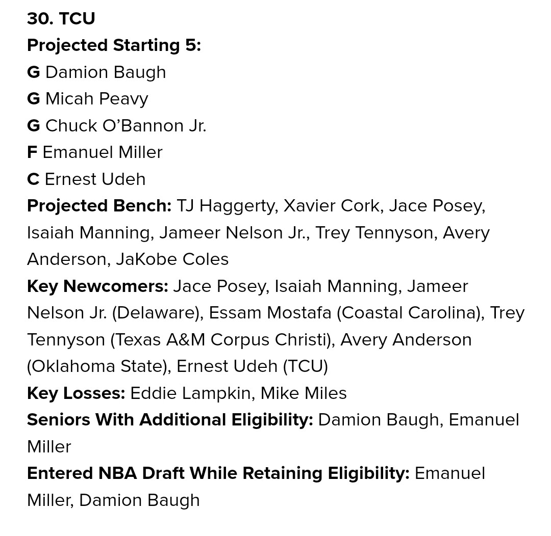@Jcoop9 Still waiting on decisions from Emmanuel Miller and Damion Baugh. If both come back, TCU will be scary good