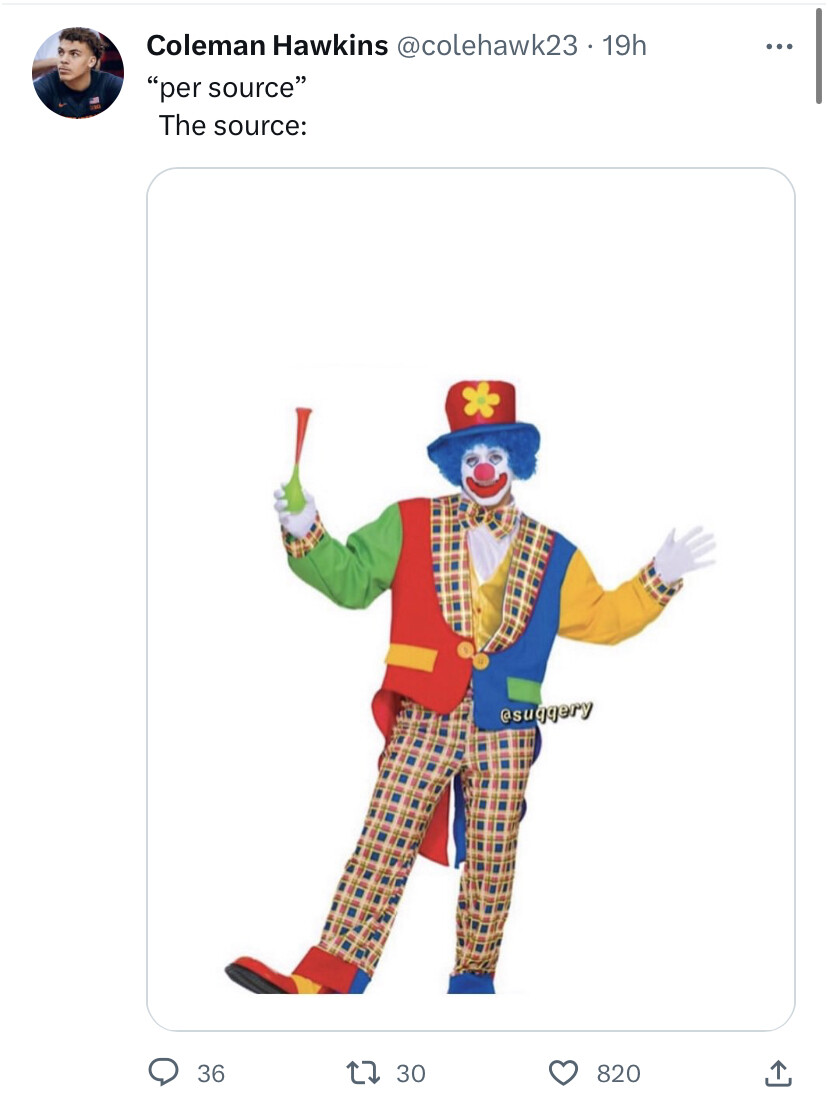 No way we’re competitive with our current lineup. Let me rephrase, no way we’re in the top half of the Big 12 as we stand. “Cross” off a natty next year. Projection - 22-13.
