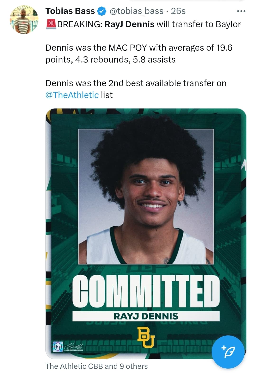 Baylor only if Jalen Bridges is gone. If Bridges goes to Australia, then Nelson steps in as Matthew Mayer 2.0
