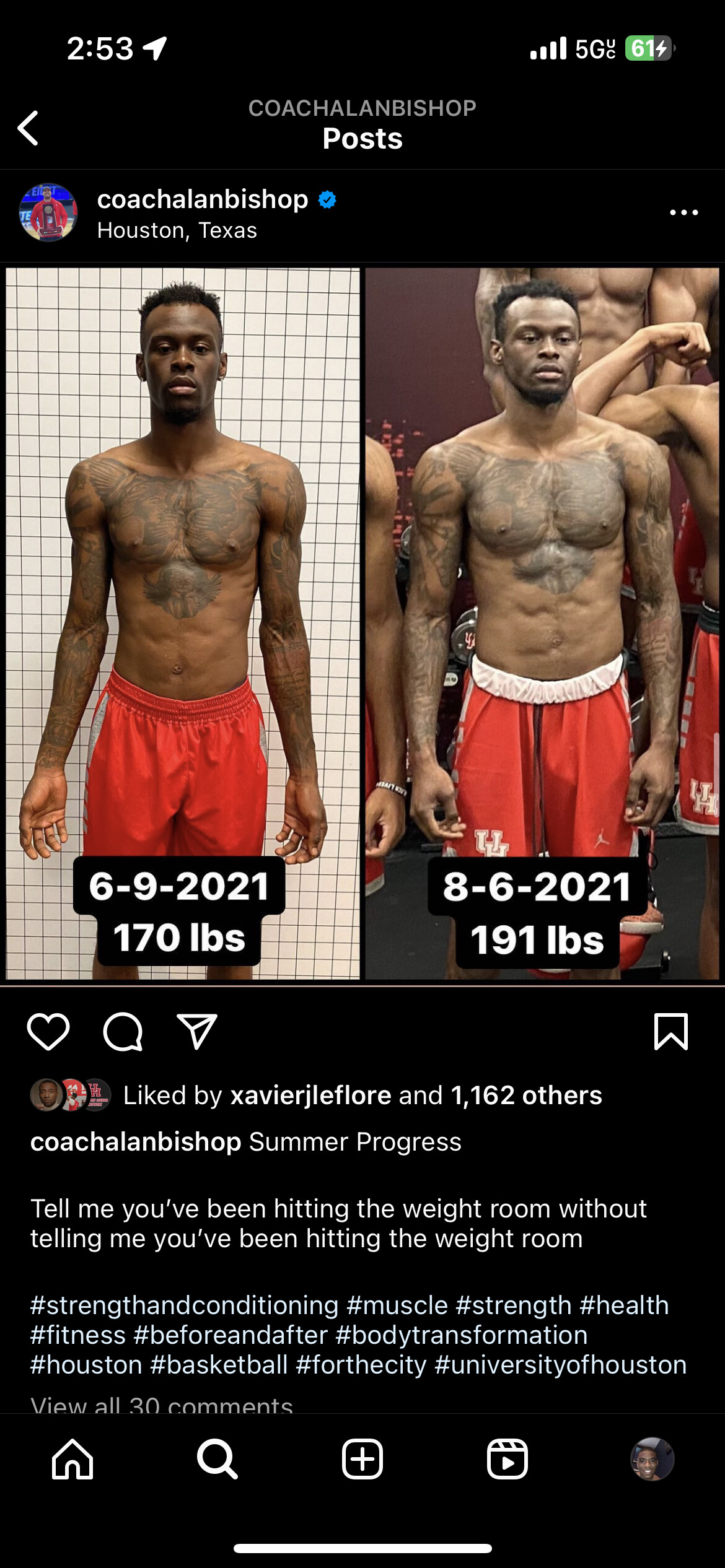 Side note. Everybody gains weight/muscle at a different pace depending on body type. An outliner for our front court next year could be if McFarland gains weight faster like Taze did. Taze gained 21 pounds in like 2 months. Now that’s very difficult but if McFarland got up to 225 then he might make a strong push to play. Right now he’s at 205 which is just way too small for somebody 6’10-6’11. Sampson has said he’s a projected starter on a championship level team that’s how good they think he will be.