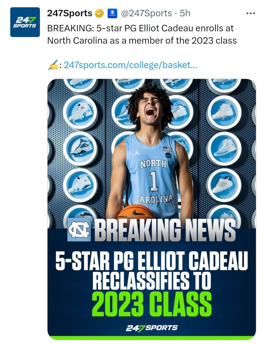 This news today as well, 5 star guard Elliot Cadeau, will reclassify. And join UNC this coming season