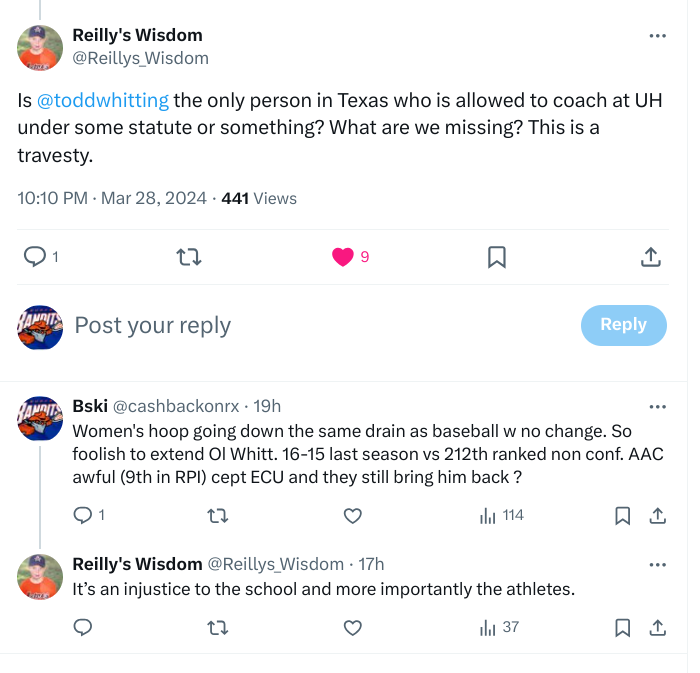 Or since sweeping Baylor, UH is 1-8 in Big 12 play.
