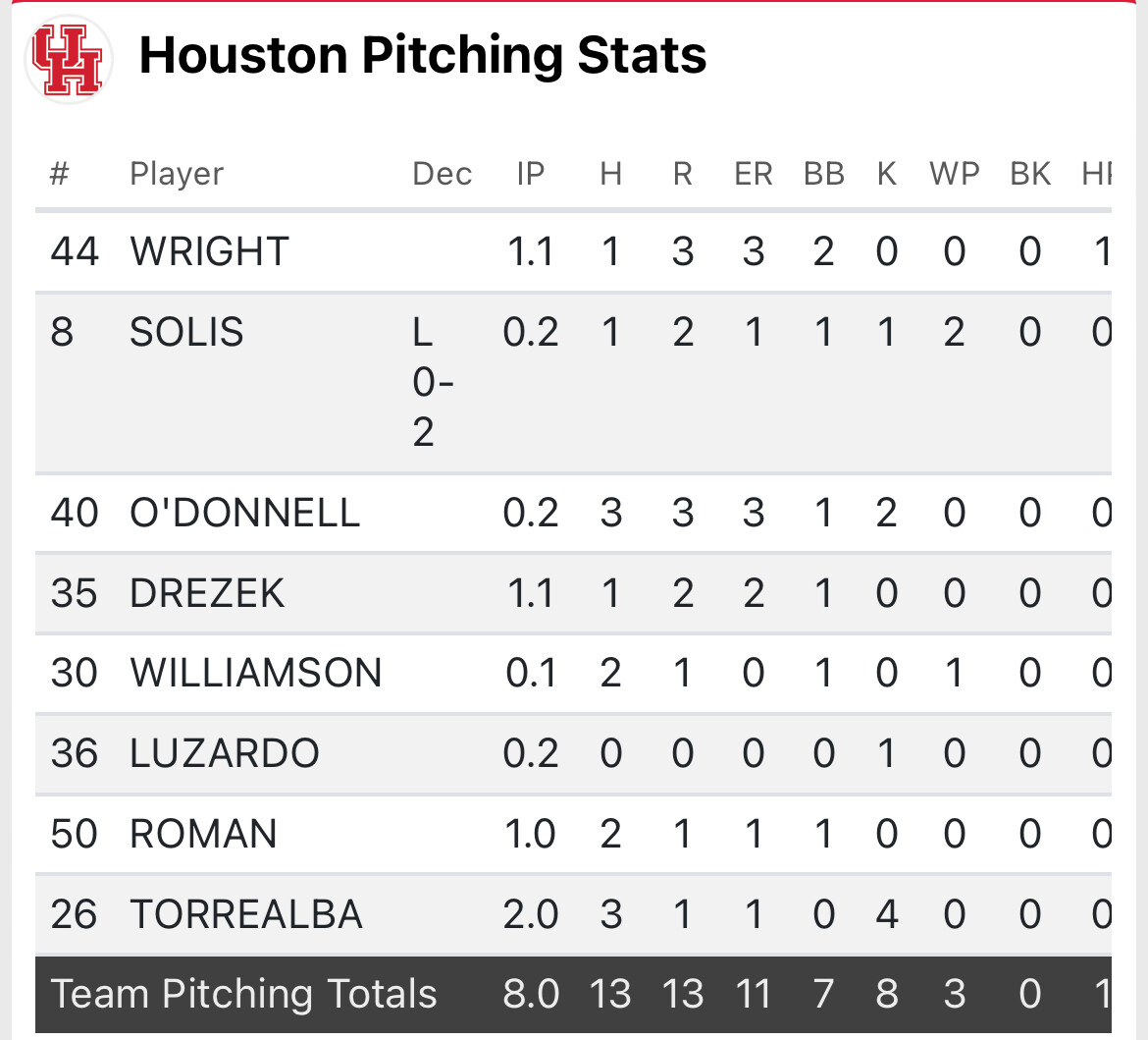 It looks like we tried but with no success. Top two pitchers that threw gave up the most runs. Giving up just two runs over the last four innings was a nice change of pace for some of the guys that threw. Good job by those guys in an extremely tough environment.