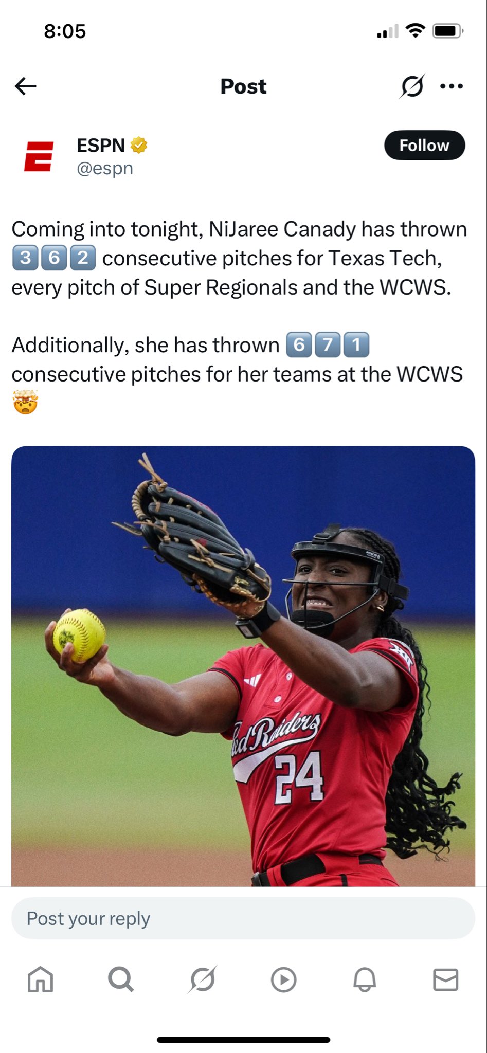 And she almost single handily got them to the CWS……31-5 with an ERA less than 1.00