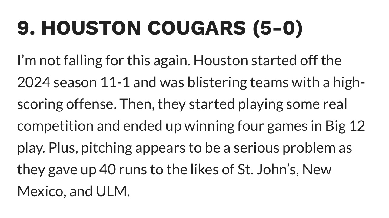 Love the wins, but have to be realistic. Giving up an average of 8 runs a game to two teams both with an over 170 RPI does bode well for conference.