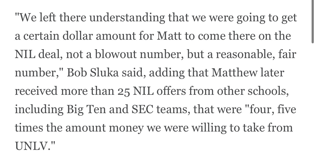 Whats really strange to me is that he didn’t hit the portal in the spring after getting 400-500k offers. Also, UNLV had a ton of transfers. Why screw over your QB? It’s all just really messy
