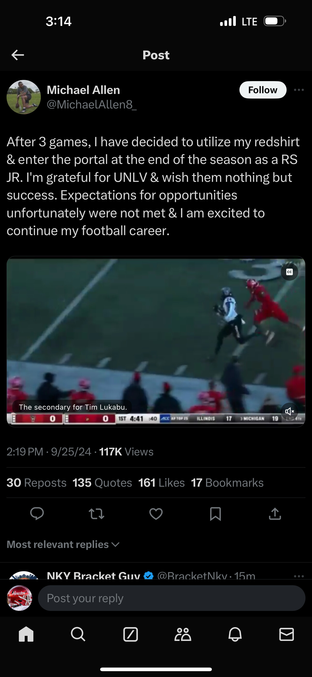 It’s funny but UNLV’s back up who presumably is taking over is also an FCS transfer. Hopefully he has gotten his NIL in writing.