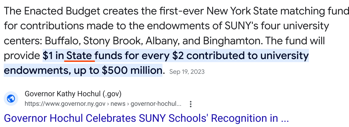 Thinking about it , it can take decades to get 1 billion for a school or a fundraiser just for endowment. The state finally made up for lack of funding for us and some others.