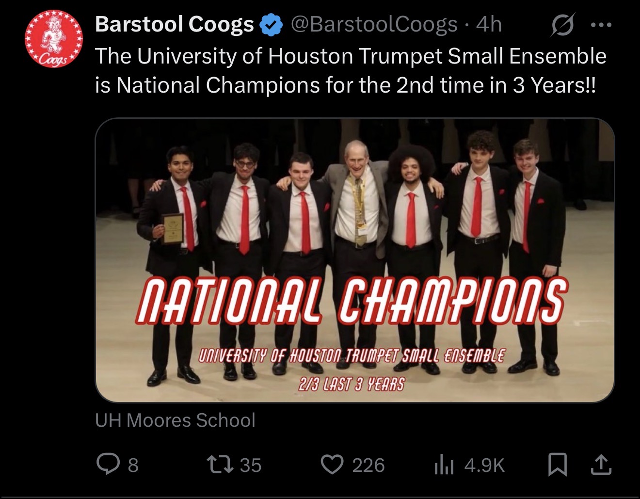 Well…really good for them! Heck, if you’re going to do something and they hold competitions for it, you might as well try to win the whole damn thing! I am sure that they practice the heck out of their craft to get that chip. Go Coogs!