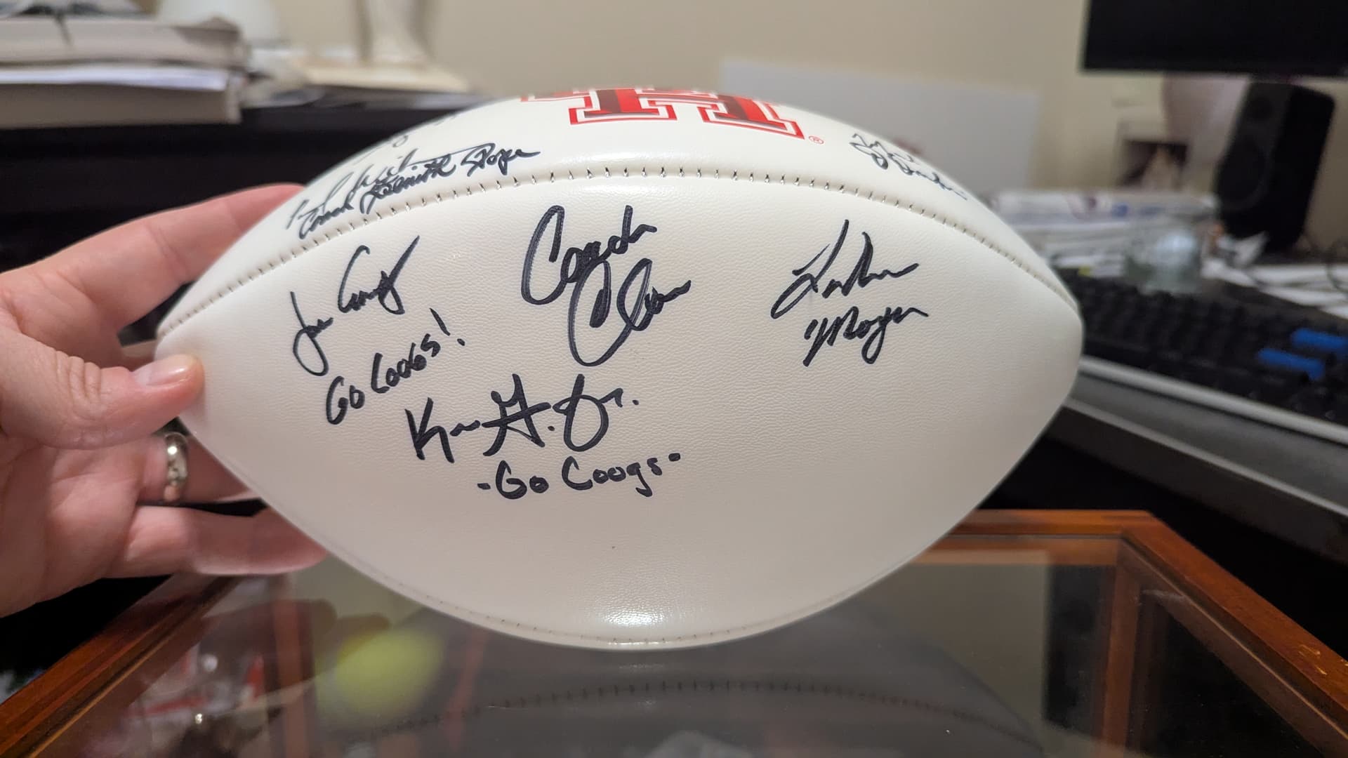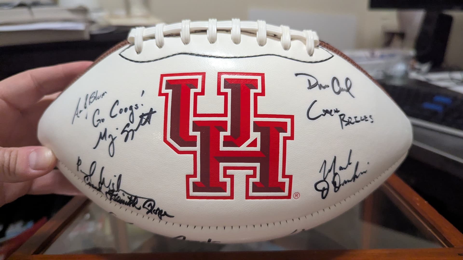 Major Applewhite to the left of the UH logo